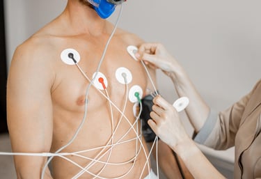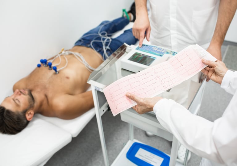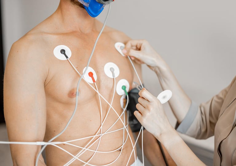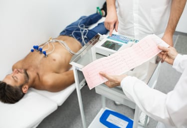 Registra a atividade elétrica do coração para diagnóstico detalhado.