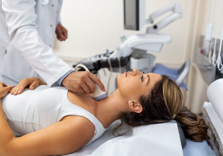 Analisa o fluxo sanguíneo nas artérias carótidas e possíveis obstruções.